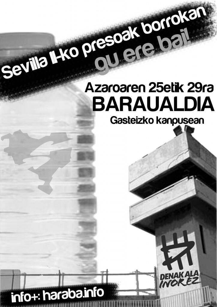 Los presos de Sevilla II se acercan ya a la cuarta semana de huelga de hambre y hoy ha trascendido que están pasando mucho frío. En el caso del gasteiztarra Roberto Lebrero, allegados han denunciado que incluso le hanquitado la manta para dormir. A través de redes sociales y mensajes de móvil, allegados de los presos denuncian su situación y han solicitado a la gente que llame a la prisión exigiendo el encendido de la calefacción.