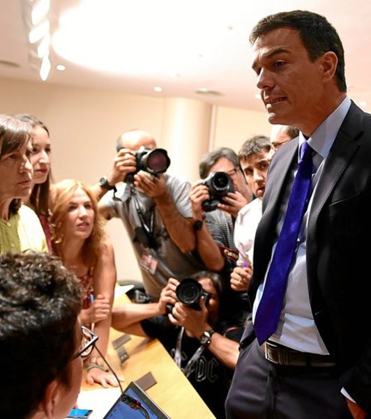 Quizás sea una coincidencia, pero la referencia a «las derechas» lleva irremediablemente a pensar en la CEDA, la Confederación Española de Derechas Autonómas que concurrió a las elecciones durante la II República española. Aunque seguro que Sánchez no lo dice por eso. Parecería descortés con alguien como Albert Rivera, presidente de Ciudadanos, y que ha sido su socio hasta anteayer. Resulta paradójico que ahora el PSOE ubique al partido naranja como el principal aliado del PP cuando meses atrás Sánchez y Rivera sellaron un pomposo acuerdo en el Congreso en el que, según revelaba ayer ‘‘Público’’, ambos se repartieron presidencia y vicepresidencia. No les sirvió de nada pero pudieron hacerse una foto ante «El Abrazo» de Juan Genovés y jugar a que eran Adolfo Suárez y Felipe González. O quien Sánchez prefiriese.