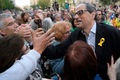 Torra y Torrent han lucido en la solapa de la americana el lazo amarillo, el símbolo que utiliza el soberanismo para reclamar la libertad de los presos independentistas.
