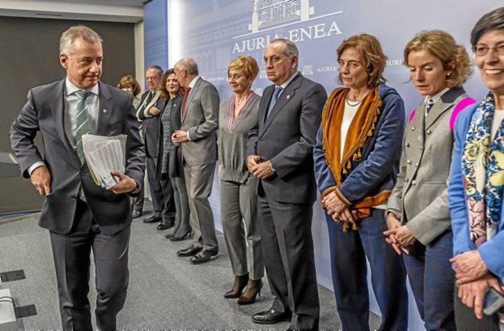 Respaldado por consejeros y consejeras, en un convocatoria de urgencia, el lehendakari, Iñigo Urkullu, anunció que convocando las elecciones para el 5 de abril «ahorramos a la ciudadanía una campaña electoral permanente a lo largo de los ocho próximos meses y la reducimos a solo dos».