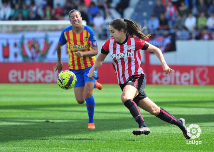 Sí lo ha hecho nada más arrancar la segunda parte, con un disparo de Sara Ortega que controlaba, giraba para entrar en el área y soltaba un chut cruzado que se estrellaba en el larguero. Doble lamento de las rojiblancas porque en la jugada posterior llegaba el tanto del Valencia. Centraba Kerlly desde la derecha para que Maca Portales le ganara la posición a Elexpuru, rematando con fuerza el 0-1.