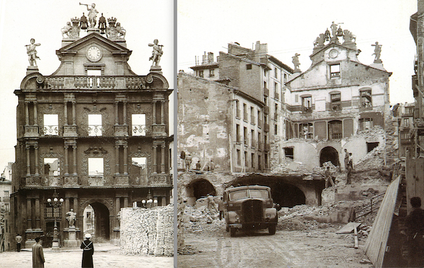 Así de diferente pudo ser la icónica plaza del Ayuntamiento de Iruñea