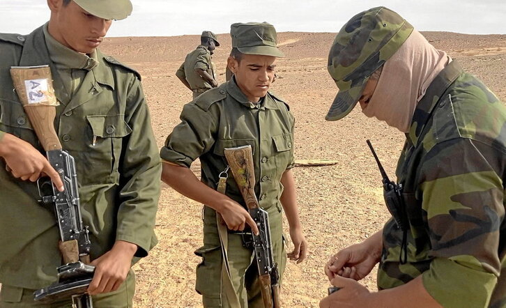 «Emakume asko ere ikusi nituen soldadu izateko asmoarekin. Kanpamentuetara iritsi eta sekulako festa giroa zegoen, autoek bozina jotzen zuten RASD-eko bandera astintzen zuten bitartean. Dendetan besarkatu egiten gintuzten, eta amona batzuek musu ere ematen ziguten. Bazekiten zer sakrifizio egin genuen gure herriarengatik borroka berri honetan parte hartzeko. Iritsi eta lau egunera akademia batean nengoen soldadu izateko prestatzeko», dio Salem-ek, 20 bat soldadurentzat Saharako tea prestatzen duen bitartean. Haima berean dozenaka soldadu daude, antzeko esperientziak dituztenak. «Nik unibertsitatea utzi nuen hirugarren ikasturtean. Ingeniaritza ikasten ari nintzen, baina nire tokia hemen zegoela argi utzi nion babesa ematen zidan Espainiako nire familiari», adierazi dio NAIZ-i 21 urteko Ahmed Fadel Ahmed-ek.