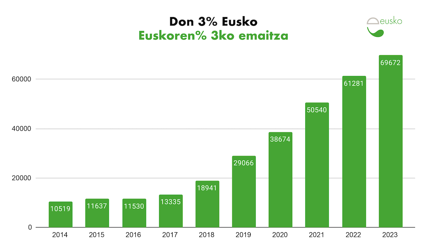 2013az geroztik, ‘Euskoren %3ko emaitza’ baliabideari esker, 315.000 eusko baino gehiago eman ahal izan zaizkie 70 elkarteri. Horiek hainbat arlotan dihardute: ingurumena, hezkuntza, elkartasuna, euskara, kirola, kultura…
