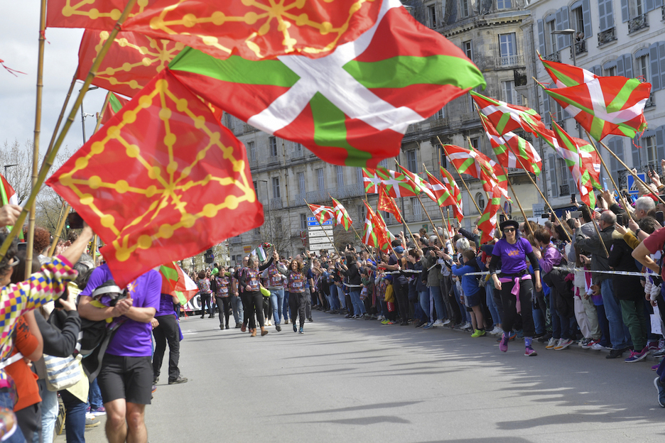 AEK-ko kide eta laguntzaile guztiak eskertuta eta 24. Korrika Ipar Euskal Herrian hasiko dela oroitarazita, bestari eman zioten paso. 800 boluntariori esker, lau gunetan hedatu zen ospakizuna: NAIZ, Merkatu Plaza, Etxepare Institutua eta Patxa Plaza.