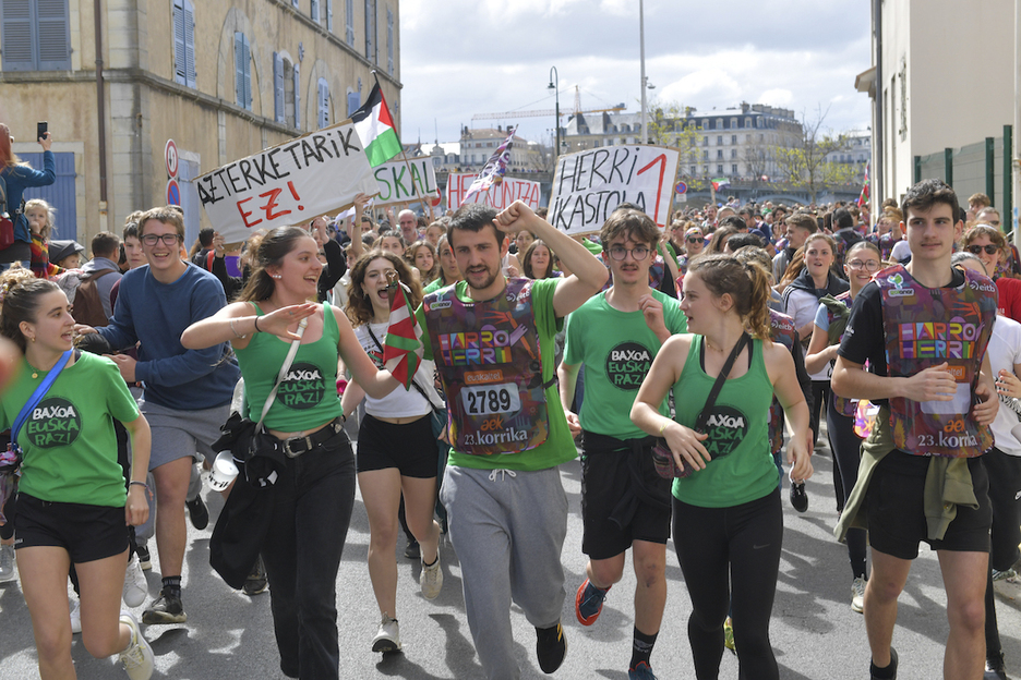 Azterketak Euskaraz kolektiboa omendu du Korrikak. Zuberoako, Nafarroa Behereko eta Lapurdiko ikasleek azterketak euskaraz pasatzeko eskubide osoa duten arren, azken azterketa, baxoa, frantsesez egitera derrigortzen dituztelako eta gogor borrokan ari direlako beren eskubidearen defentsan. Ekitaldian, animoak eman eta txalo bero bat jo zien plaza osoak gazteei.