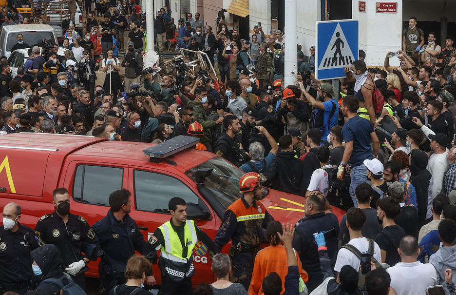 Los motivos de indignación por la gestión crecen día a día. Primero fue la tardanza del Gobierno valenciano en informar de la alarma roja (declarada por Aemet a las 8.00 de la mañana del martes y no transmitida a la ciudadanía hasta doce horas después). Después se le suman los tiras y aflojas entre autoridades valencianas y estatales sobre el grado de alerta o el envío de efectivos militares y policiales, que no han llegado en masa a la zona hasta tres días después. Entre medio, el Gobierno valenciano del PP ha desestimado la ayuda ofrecida desde puntos como Euskal Herria afirmando primero que no era necesaria y después que lo hacía por motivos de seguridad y organización.