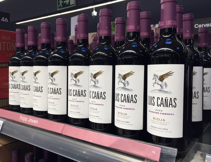 Botellas de tinto joven Luis Cañas en los lineales de EROSKI. (NAIZ)