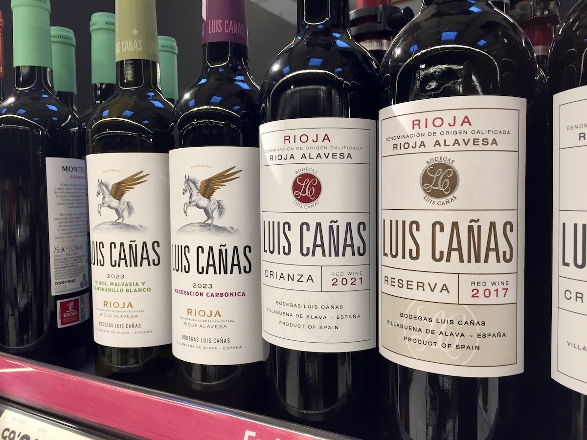 Botellas de tinto joven Luis Cañas en los lineales de EROSKI.