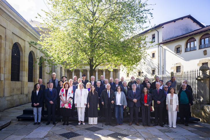 Los hombres y las mujeres que participaron en la primera legislatura eligieron al primer presidente de la Cámara, Juan José Pujana, y al primer lehendakari, Carlos Garaikoetxea, que ha estado presente en el acto.