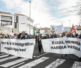 Une manifestation contre la loi Immigration à Hendaye le 14 janvier.         G. FAUVEAU