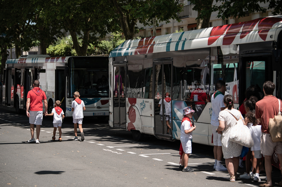 Udal agintarien aholkuak segituz, familiek garraio publikoa hobetsi dute haurren egunera bertaratzeko. (Patxi BELTZAIZ)