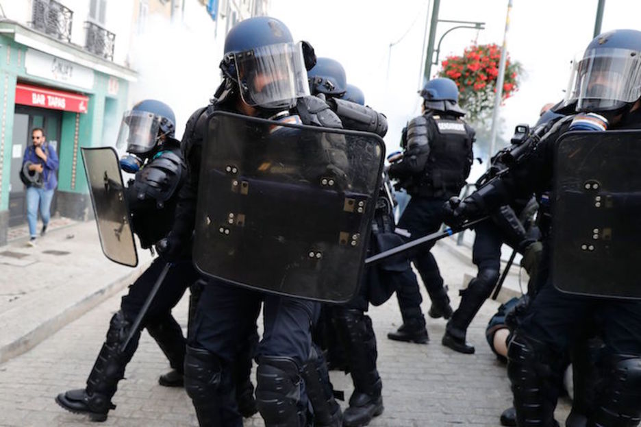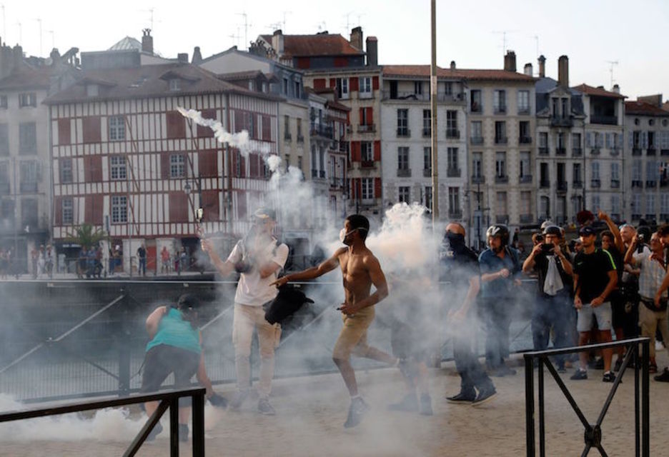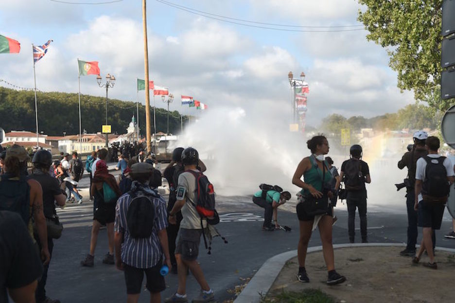 La Policía francesa ha cargado, utilizando gas lacrimógeno y cañones de agua, contra las personas que participaban en una movilización contra el G7 en las calles de Baiona que no estaba autorizada. El despliegue policial ha sido muy importante.
