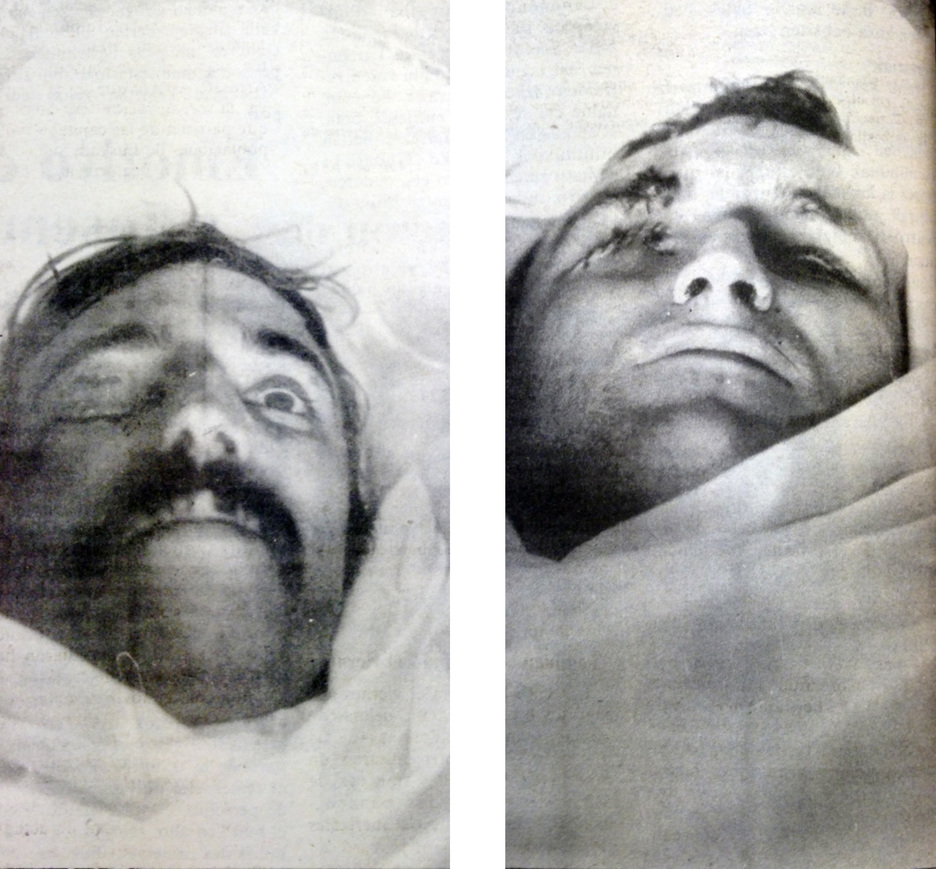 El ojo derecho de ‘Kurro’ y ‘Pelitxo’ aparecían afectados por los múltiples disparos de Pasaia. Sus cuerpos estaban acribillados. (‘EGIN’)