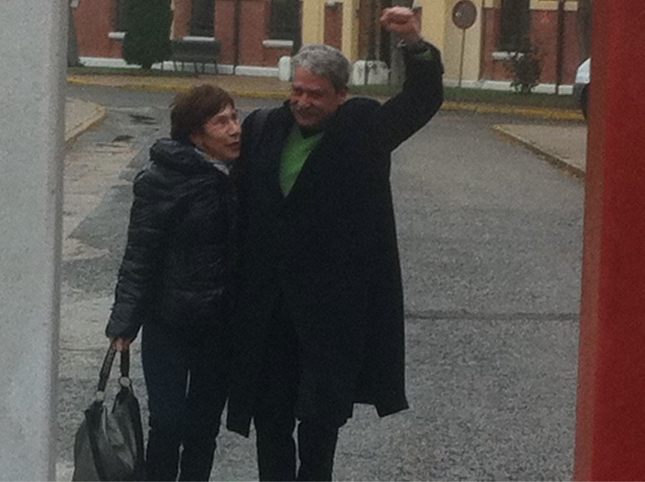Jabier Salutregi Burgoseko espetxetik ateratzean bere bikotekidearekin batera. (@gara_iiriondo)
