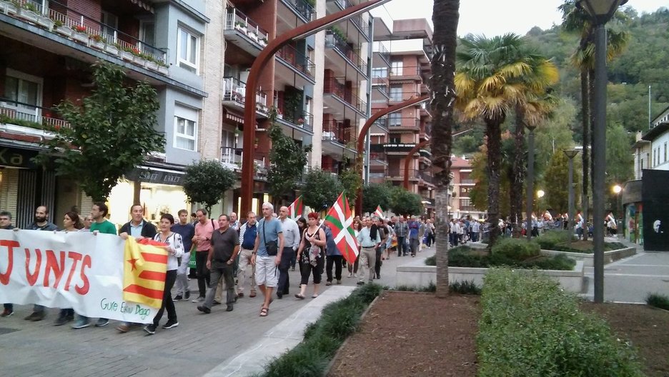 Miles de personas han salido a la calle en numerosos puntos de Euskal Herria, bajo el lema «Junts», respondiendo a la convocatoria de Gure Esku Dago, para denunciar el encarcelamiento de los presidentes de la Assemblea Nacional Catalana (ANC) y de Òmnium Cultural, Jordi Sànchez y Jordi Cuixart. Hemos recogido en esta galería imágenes de algunas de esas movilizaciones.