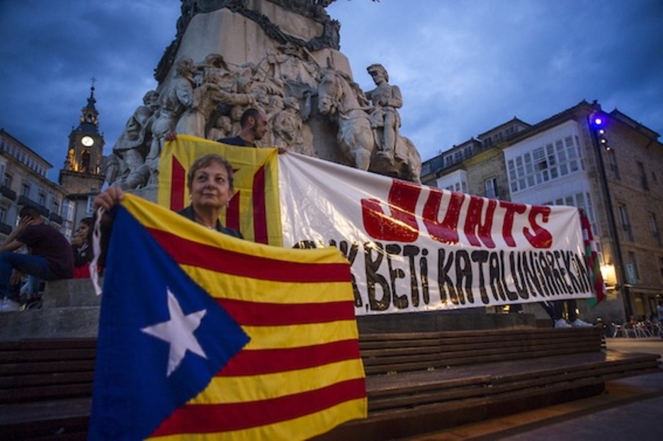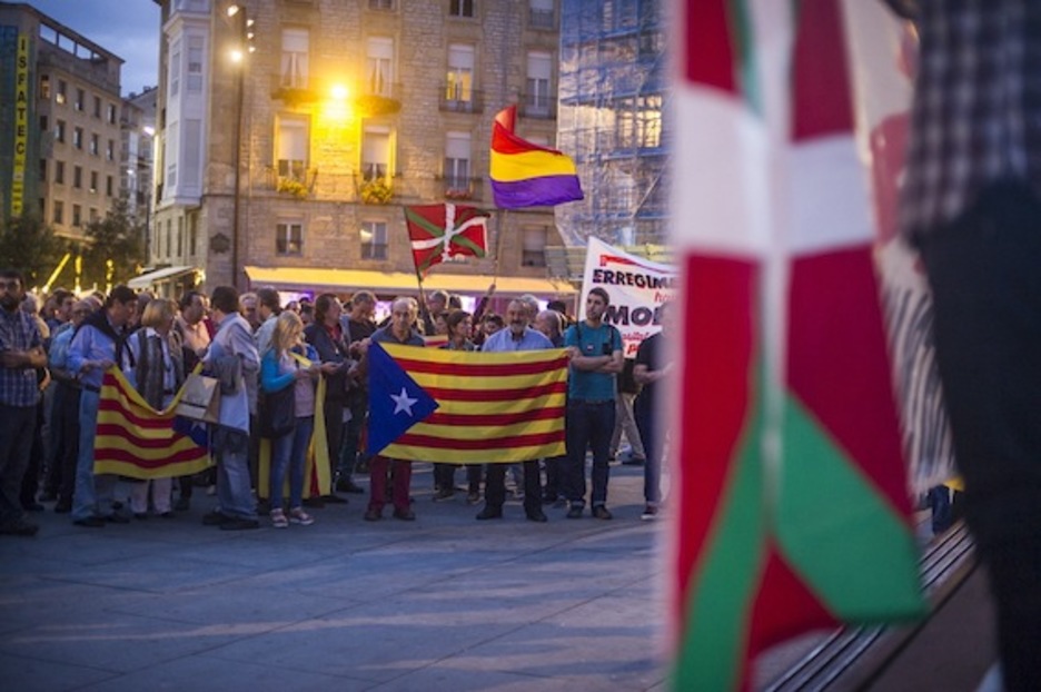 En la concentración de Gasteiz se han podido ver diferentes banderas: ikurriñas, esteladas, republicanas... (Jaizki FONTANEDA/ARGAZKI PRESS)