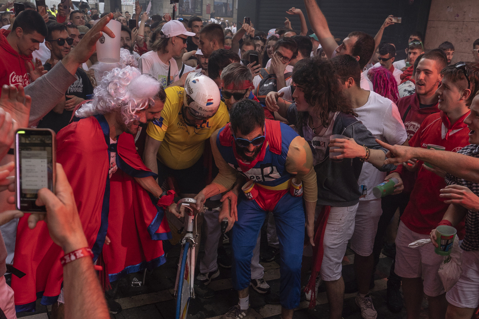 Los sanfermines terminan oficialmente el día 14 a las 00.00 horas con el Pobre de Mí, pero como manda la tradición, centenares de irreductibles han alargado la última noche hasta el acto que realmente cierra las fiestas de Iruñea: el encierro de la villavesa.