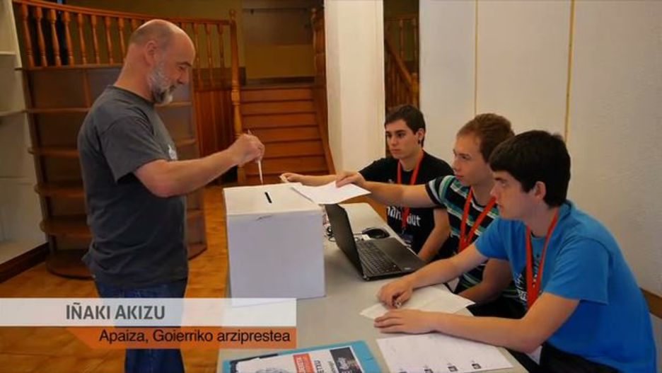 Iñaki Akizu Urretxuko apaiz eta Goierriko arzipresteak eta McCrea Clarke irlandarrak Urretxun eman dute botoa gaur goizean.