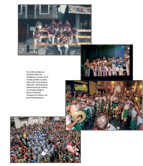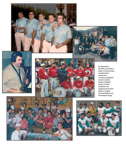 La idea se quedó en el aire, que diría Bob Dylan, pero al año siguiente volvió a posarse sobre la mesa. Se dieron cuenta de que podían compaginarlo con sus trabajos, así que empezaron a mover hilos con ayuntamientos y organizadores de fiestas con los que ya tenían contacto. Dicho y hecho, encadenaron en agosto cinco días en Leitza, cuatro en Goizueta y otros cuatro en Ergobia. «Íbamos bombardino, trombón, saxofón y trompeta, lo más elemental, y Zapatero con la caja», recuerda Canario con una memoria prodigiosa para nombres y fechas, y que ha puesto sus recuerdos negro sobre blanco para un libro-disco que estaba previsto que saliera antes del verano.