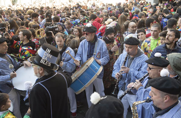 Nueve personas bajan de la furgoneta. Pantalón blanco, niqui de color azul. El jersey y el chubasquero se quedan en el vehículo, hoy no hace frío. Abren la doble puerta trasera, cada uno coge su instrumento. El caja entrechoca sus baquetas para marcar el inicio. Clac, clac, clac, clac. Ahí vamos, que no pare la música. Cincuenta años sin tregua, cincuenta años haciendo honor a su nombre. Son la txaranga Incansables.
