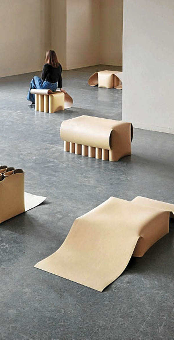 Lina Chi, graduada de la Escuela de Diseño de Eindhoven, ha creado una colección de muebles curvilíneos fabricados a partir de láminas individuales de linóleo para ayudar a reinventar este material tan “popular” en los 70. Sorpresa, sorpresa, el linóleo no es plástico, sino que se fabrica a partir de una combinación de corcho, polvo de madera y piedra caliza, mezclados con aceite de linaza y aplicados a un respaldo de tela de yute. La colección incluye un banco, una mesa baja y dos taburetes diseñados para mostrar cómo el linóleo se puede utilizar para crear muebles. «Usar linóleo en el 2022, ¿qué significa?», se cuestiona Chi. «Resistente al agua y al fuego, el desafío era hacerlo lo suficientemente fuerte como para mantener el peso corporal de una persona», por lo que se inspiraron en la capa corrugada del cartón. Los muebles no llevan adhesivos ni fijaciones permanentes. Se deformó una sola hoja de linóleo a mano en una habitación climatizada, creando una forma estructural corrugada con florituras curvas escultóricas que se endurece en su lugar cuando se enfrían. ¿Qué os parece?
