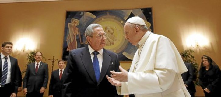 El presidente cubano, Raúl Castro, tuvo palabras elogiosas para el papa Francisco tras reunirse con él ayer, asegurando que si el pontífice de origen argentino sigue hablando como ha hecho hasta ahora, él podría volver a la Iglesia Católica. Castro le agradeció a Francisco sus esfuerzos en la mediación con EEUU que llevó en diciembre a un relanzamiento de las relaciones entre ambos países. Se entrevistaron durante una hora por la mañana en el Vaticano.