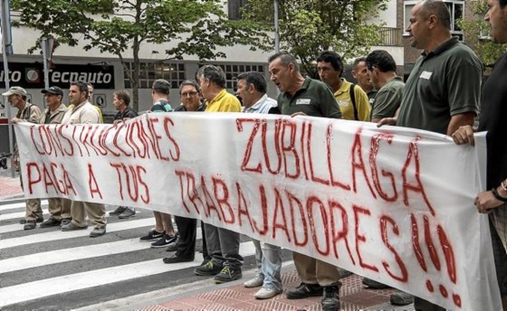En Iruñea, los trabajadores de la empresa Zubillaga, apoyados por representantes de UGT y LAB, se concentraron ayer frente a la sede de la empresa para protestar por el impago de los salarios desde el mes de abril.