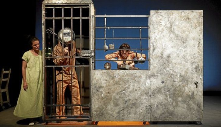 Bi lengoaia eszeniko horiekin eta antzezle taldearekin (Iraia Elias, Miren Tirapu eta Xabi Donosti) egindako inprobisazio lanaren batura da “Sherezade eta tipularen azalak”, bihar Donostiako Antzoki Zaharrean euskaraz estreinatuko duten obra (gaztelaniazkoa joan den asteburuan estreinatu zuten). “Mila eta bat gau” arabiar literatur laneko Sherezade pertsonaiaren gainean eraikitako obra da. Gizonentzat eraikitako mundu batean biziraun ahal izateko istorioak asmatzen zituen Sherezadek, eta Pimentak izpiritu hori nahi zuen bere obrarako: «Tipulak bezala, emakumeak azalak eraiki behar ditu ingurura egokitu eta bizirauteko: azal berriak sortu eta haietara ohitu, hori baita etorkizunean zain duzuna. Bizi den itxialdi egoerari aurre egiteko jantzi ezberdinak behar ditu emakumeak».