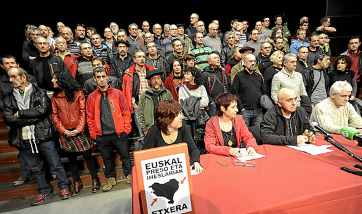 Hacia las 12.10, los convocantes abrieron las puertas del local para que los medios pudieran ir instalándose en la sala. Ya dentro, alrededor de 70 expresos, entre quienes se encontraban buena parte de los afectados por la doctrina 197/2006 y los representantes del colectivo de mediadores de EPPK, se situaron tras la mesa, en la que ejercieron de portavoces Itziar Martínez, Arantza Garbayo, Estanis Etxaburu y Antxon López Ruiz. El morbo estaba otra vez servido en el intento de identificar y captar las esperadas imágenes de exprisioneros como Inés del Río o Domingo Troitiño.